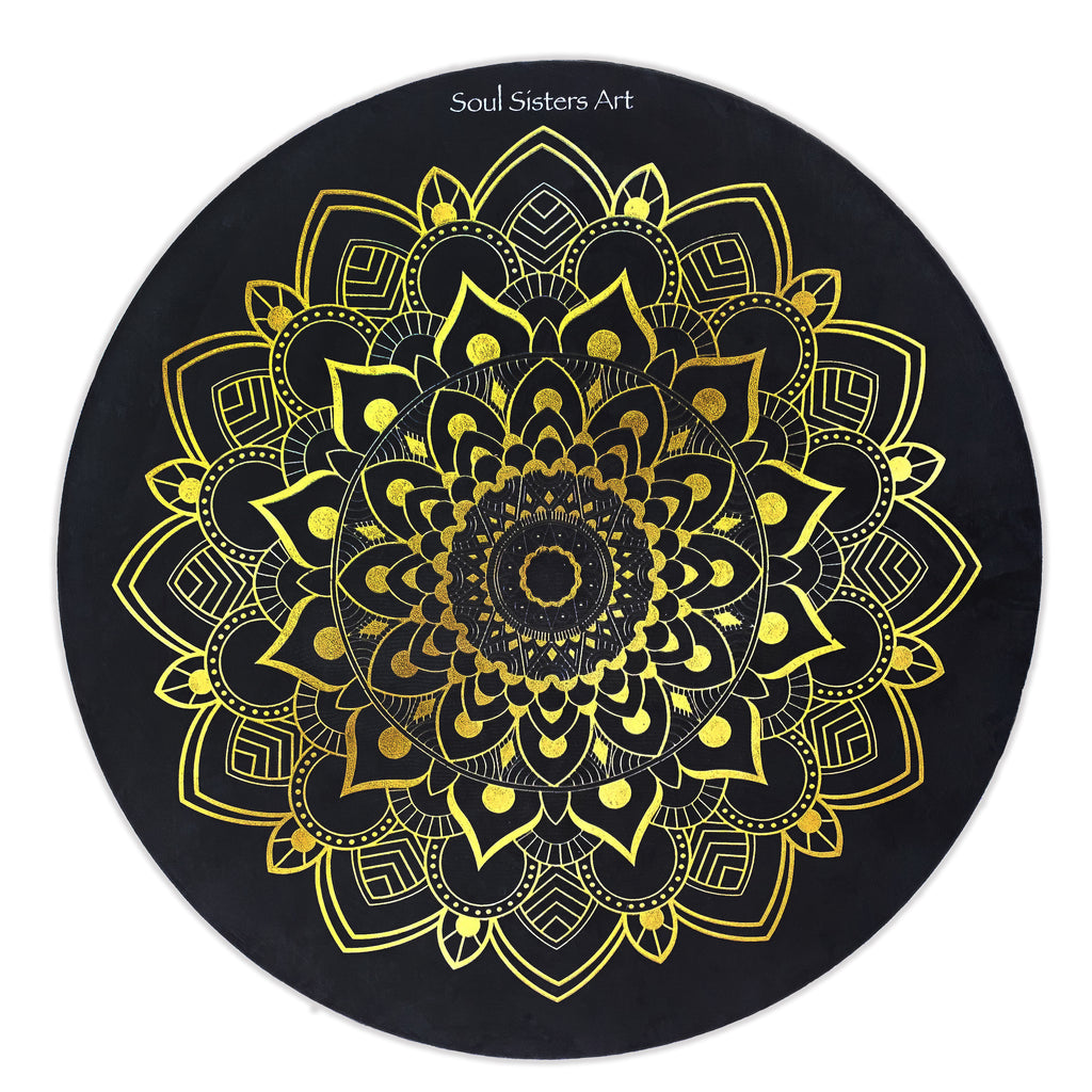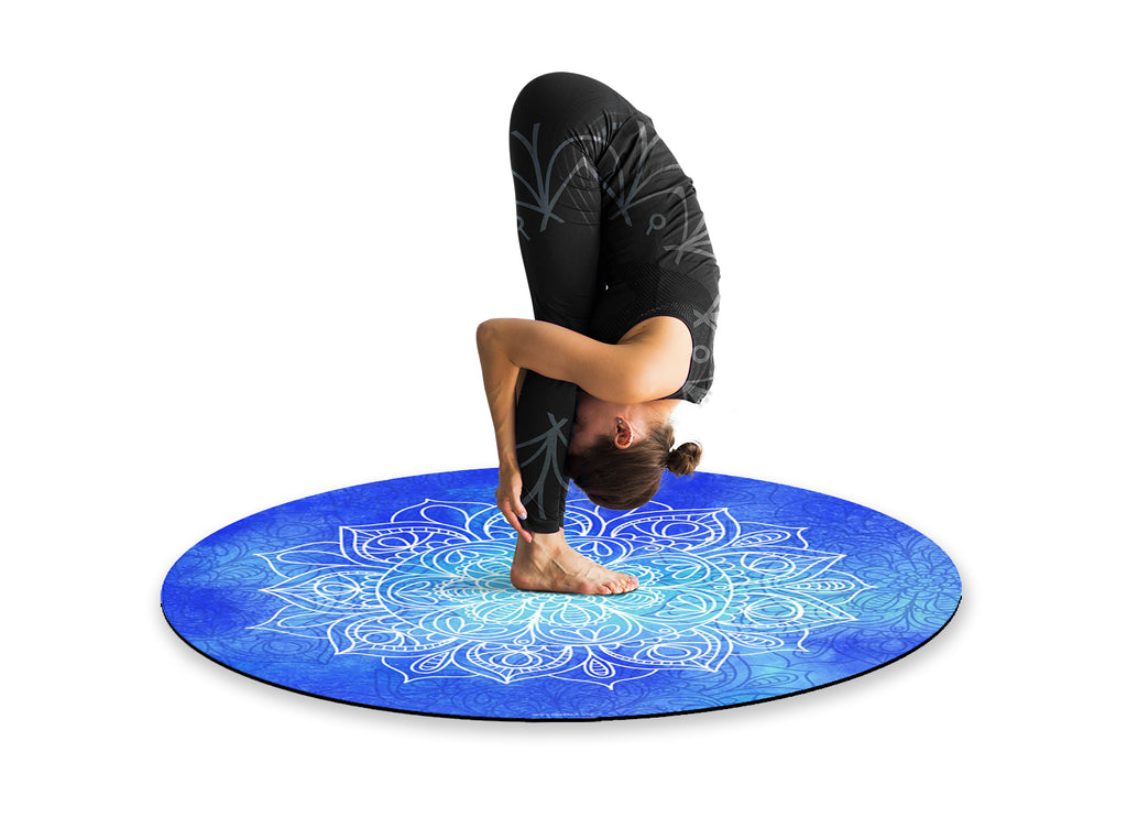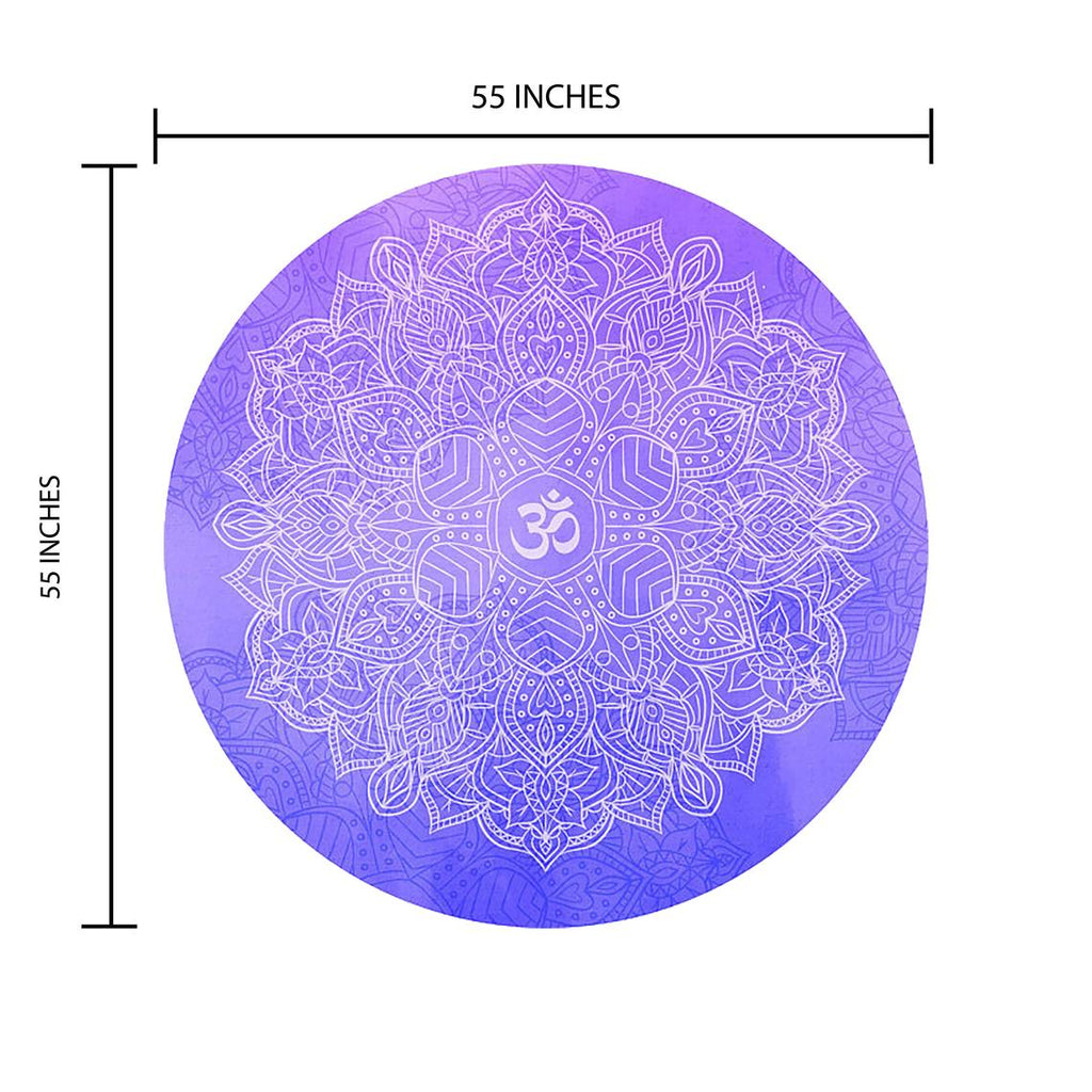 The round yoga mat designed by us has 360° range of motion and freedom of movement in all directions. The top layer is absorbent microfiber with a natural rubber core and base. Easy to clean, this mat can be used for prenatal yoga, mommy and me yoga, and all home practices. Beautiful and inspired by the moon, it can become part of your home decor. Great for all floor exercises, including general fitness and cross training 360° of strength and flexibility. 55" Diameter; 4mm thick. Decorative top surface enhances any living or sacred space Durable microfiber sweat-activated top layer Slip resistant when wet Easy to fold and transport Made out of Suede